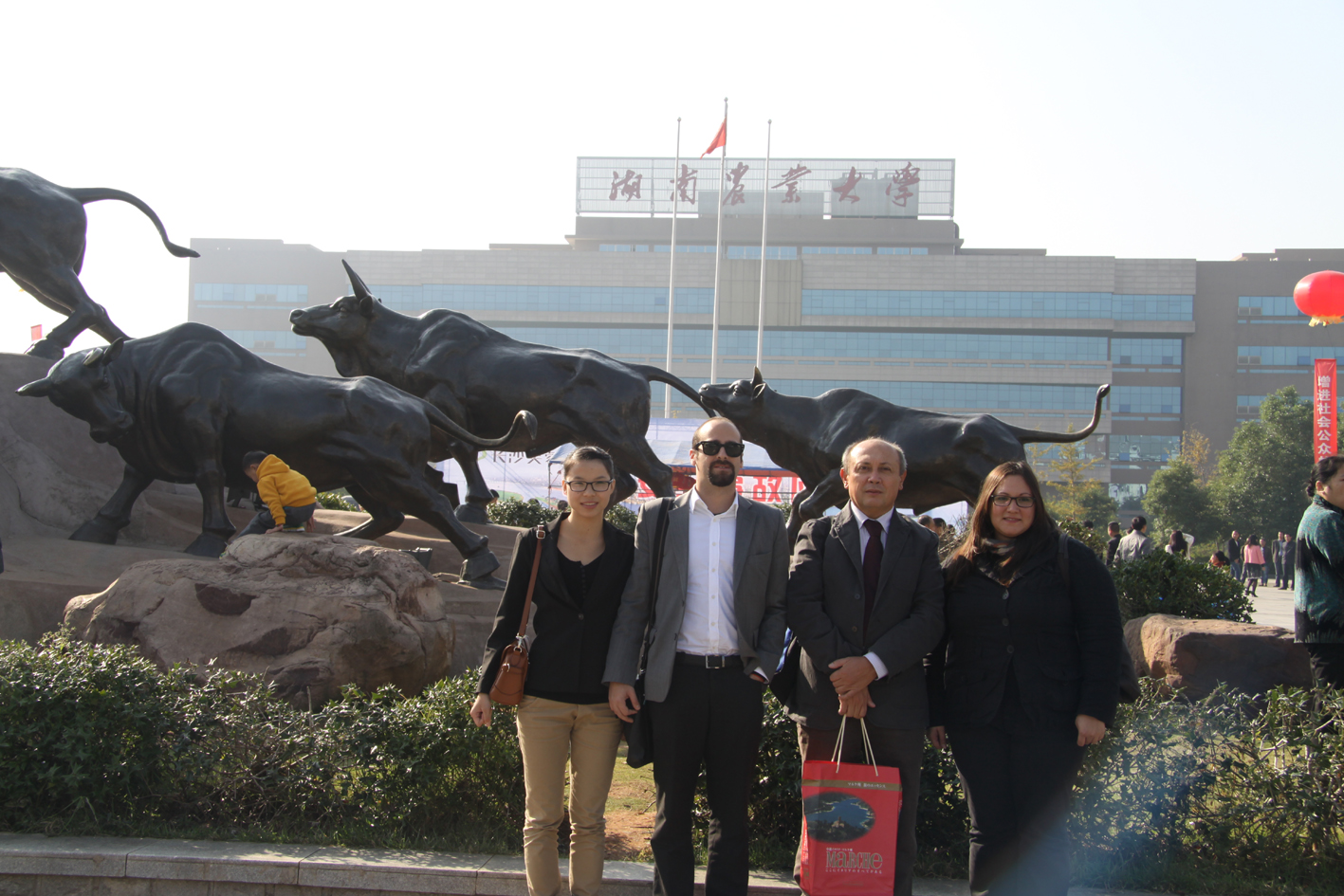 代表团首先参观了我校图书馆和校园,他们对我校图书馆现代化的阅览设备、学生良好的学习氛围以及美丽的校园环境大加赞赏。随后,我校周清明校长在外宾楼四楼会议室会见了意大利代表团,园艺园林学院钟晓红院长、农学院陈光辉院长、食品科技学院吴卫国副院长、工程学院姚帮松副院长、国际交流与合作处杨知建处长和刘湘辉副处长以及国家柑橘中心主任邓子牛教授等也出席了会见。通过友好交流座谈,双方希望能达成友好交流关系并促成双方签订学术合作协议备忘录,并在以后加强双方之间的领导互访、教师合作及学生交流。会谈结束后,两校互赠具有特色的纪念品并合影留念。