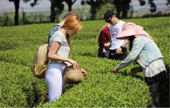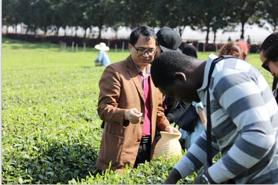 肖文军教授指导留学生采茶