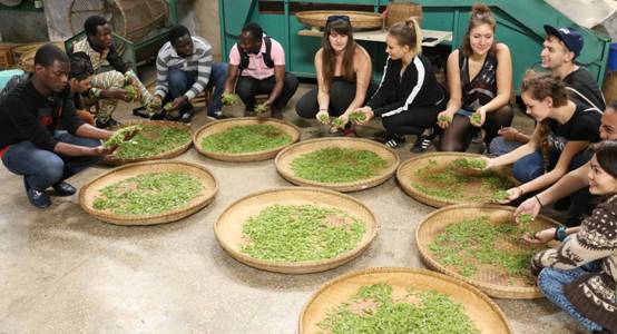进入长安基地后,茶学系主任肖文军教授首先给学生们介绍了茶学的基本知识,以及中国茶的不同种类和不同制作方法。在了解了基本的茶叶知识以后,在中国学生的辅导下,留学生前往茶厂采摘茶叶。蓝天白云之下,百亩茶山充满了中外学生的欢声笑语,从对茶叶的陌生,到如何采摘,如何加工制造,如何储存,再到充分理解东方神奇树叶的传说,学生们得到了是满满的收获。